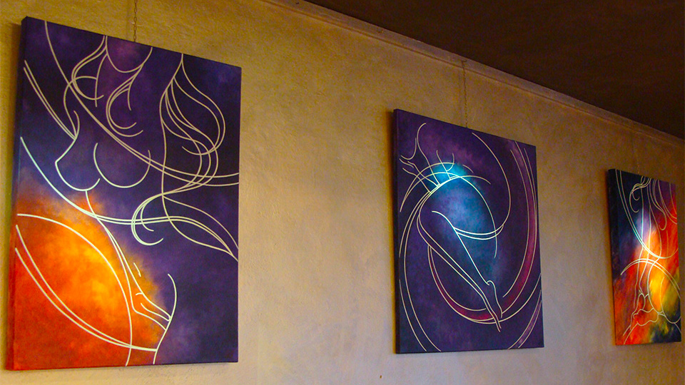 La ricerca di Larix si sviluppa attraverso tre universi espressivi che dialogano tra loro: la pittura, la decorazione e la grafica. Tre linguaggi differenti, ma un unico sguardo creativo che attraversa superfici, materiali e progetti con la stessa sensibilità visiva. Il segno è il punto di partenza. Linee morbide, continue, sintetiche costruiscono figure, simboli e presenze evocative: il femminile, gli animali simbolici, forme che raccontano energia, armonia ed emozione. La formazione nel mondo della comunicazione ha influenzato profondamente questo linguaggio, portando nell’arte una forte capacità di sintesi visiva e una sensibilità contemporanea verso il segno, l’immagine e il messaggio. Per questo il lavoro di Larix non si limita alla pittura su tela. Il suo linguaggio si muove con naturalezza anche nella decorazione e negli oggetti, trasformando ceramiche, tessuti e superfici in spazi creativi dove arte e quotidianità si incontrano. Il risultato è un mash-up culturale che unisce arte, design e comunicazione: un universo visivo contemporaneo, versatile e riconoscibile, dove ogni opera diventa un segno di identità.